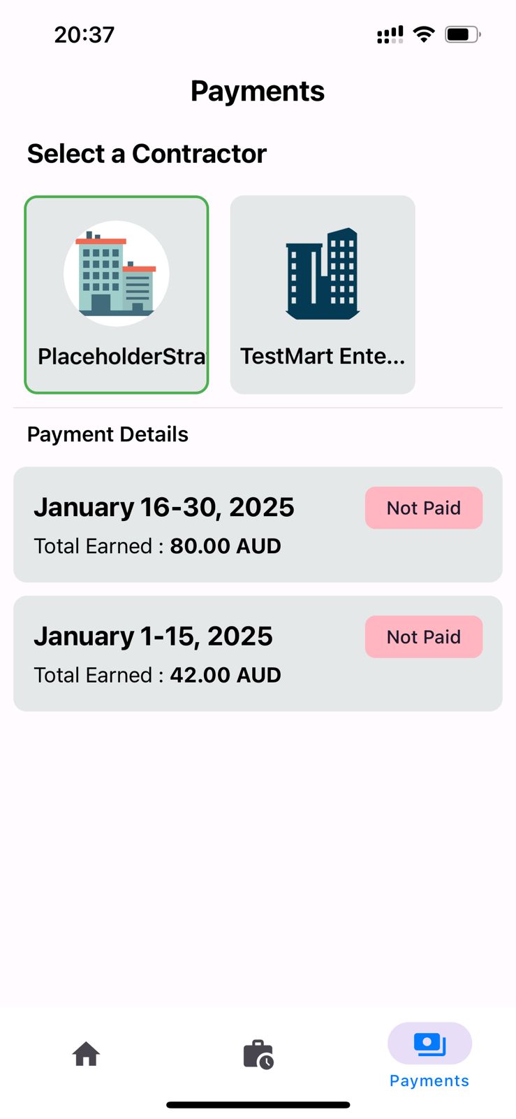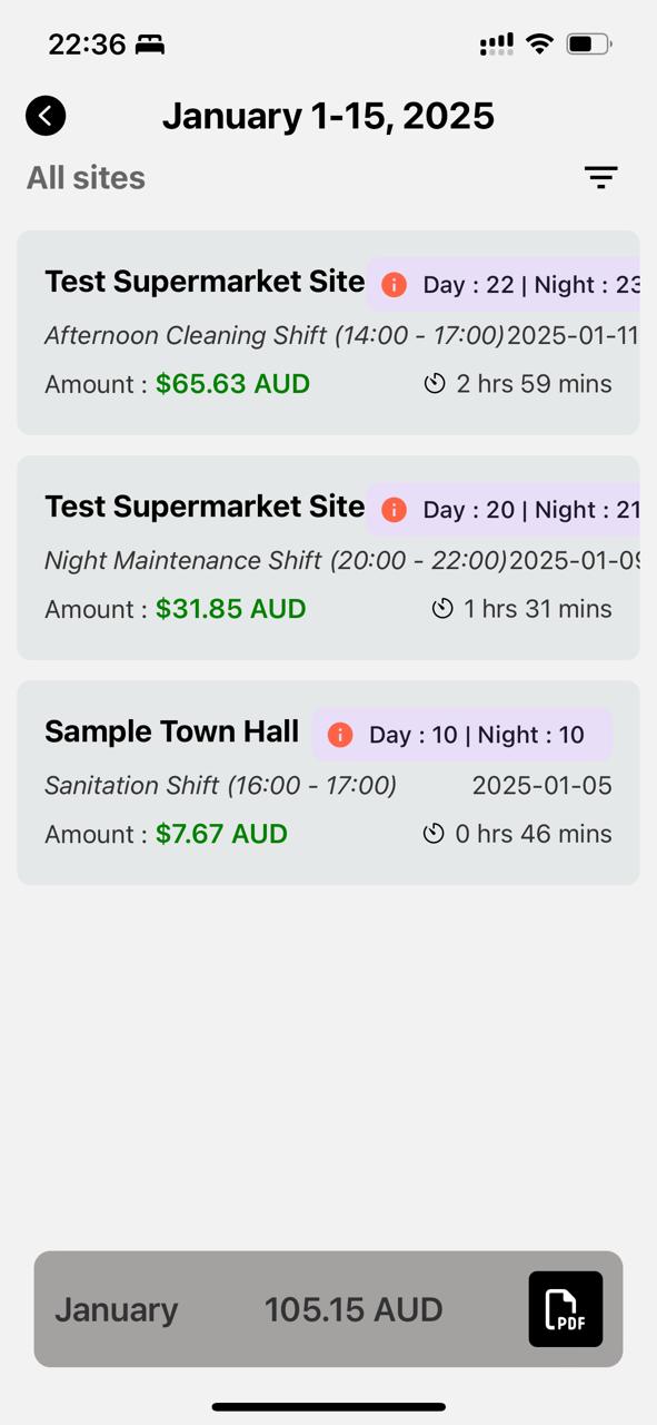 The Tracking Pro mobile app gives workers an intuitive, all-in-one tool to manage their shifts, tasks, and payments — right from their phone.